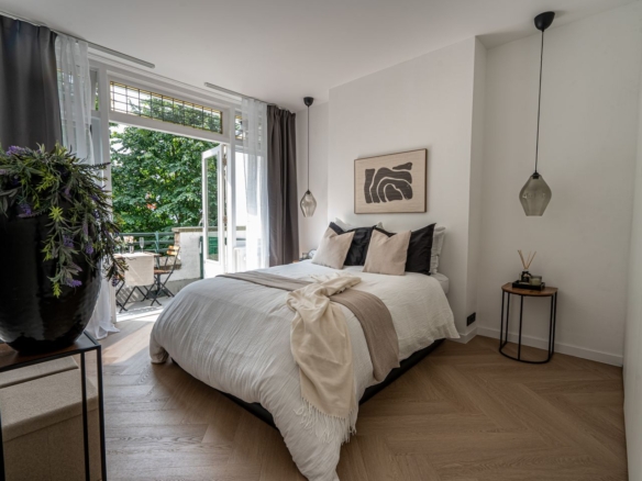 De omgeving biedt een rijke keuze aan restaurants, cafés en alle voorzieningen die het stadsleven compleet maken. Het bijzondere aan dit appartement is de combinatie van stadse levendigheid met groene rust – dankzij de weelderige binnentuin met volwassen bomen ervaar je de sereniteit van het groen, midden in de stad.
